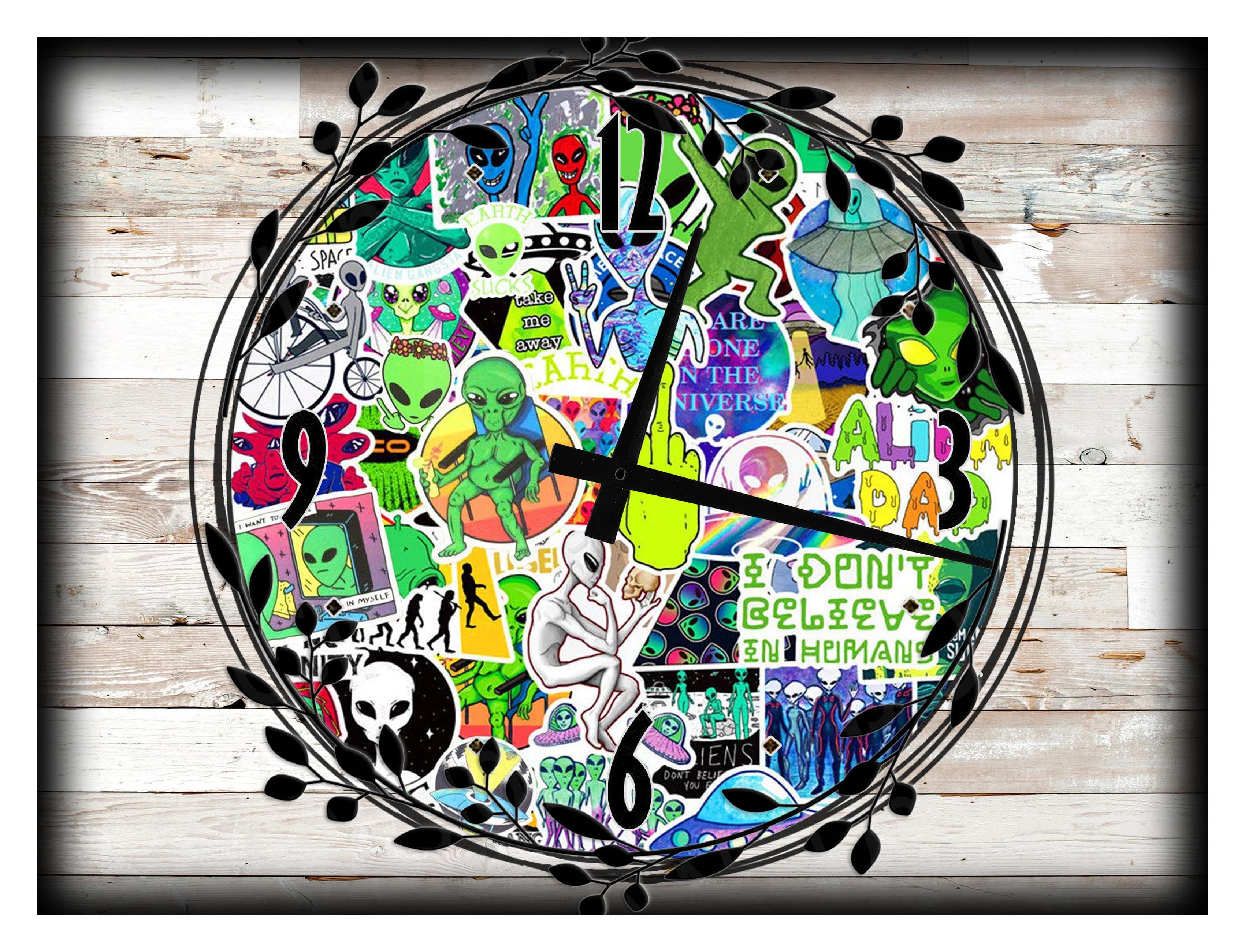 Large Wall Clock On Canvas Art Print Alien Space Sci Fi Cartoon Stickers Large Clock Wall Art 12 X 16 Inch Home Decor Walmart Com